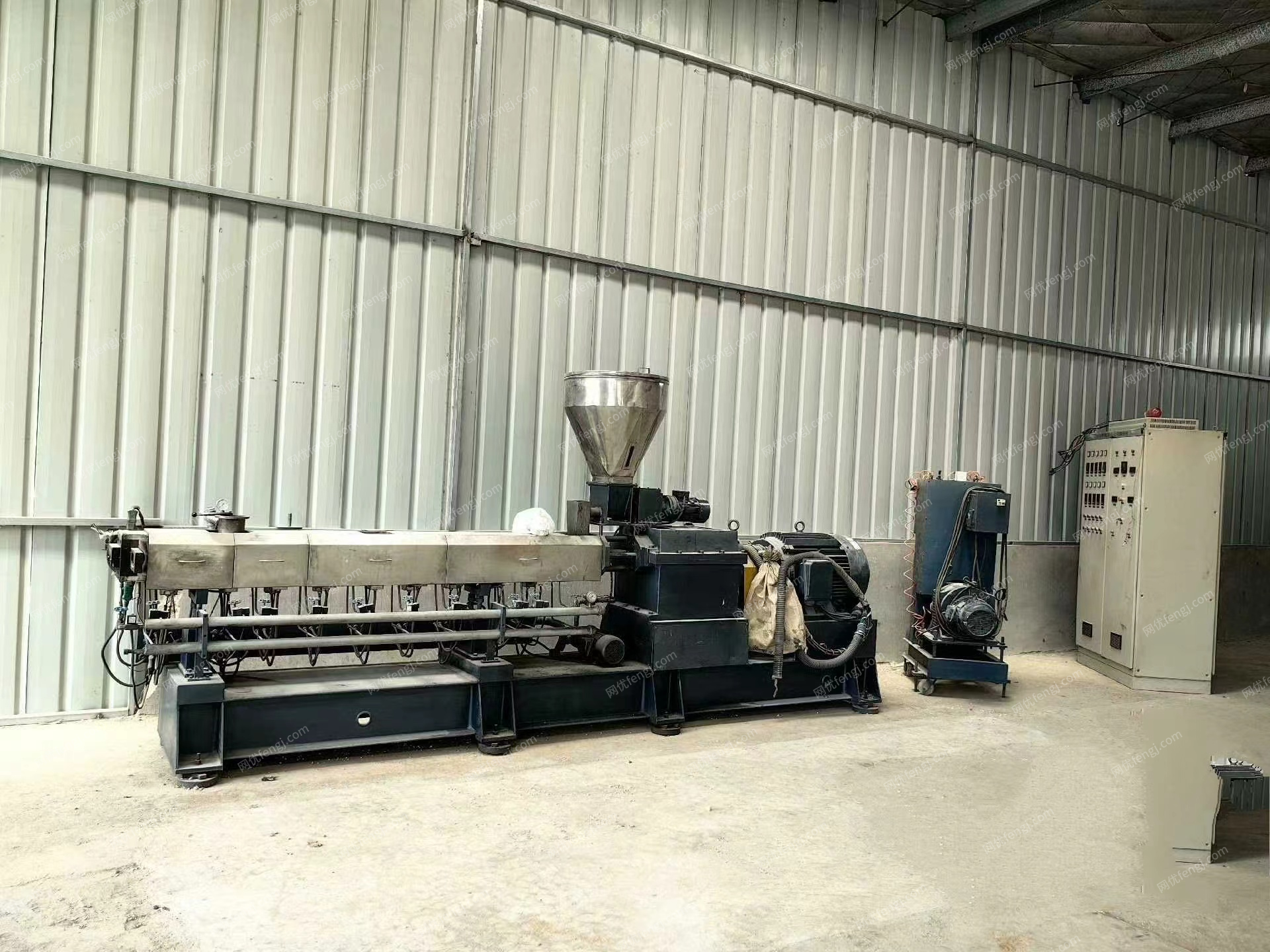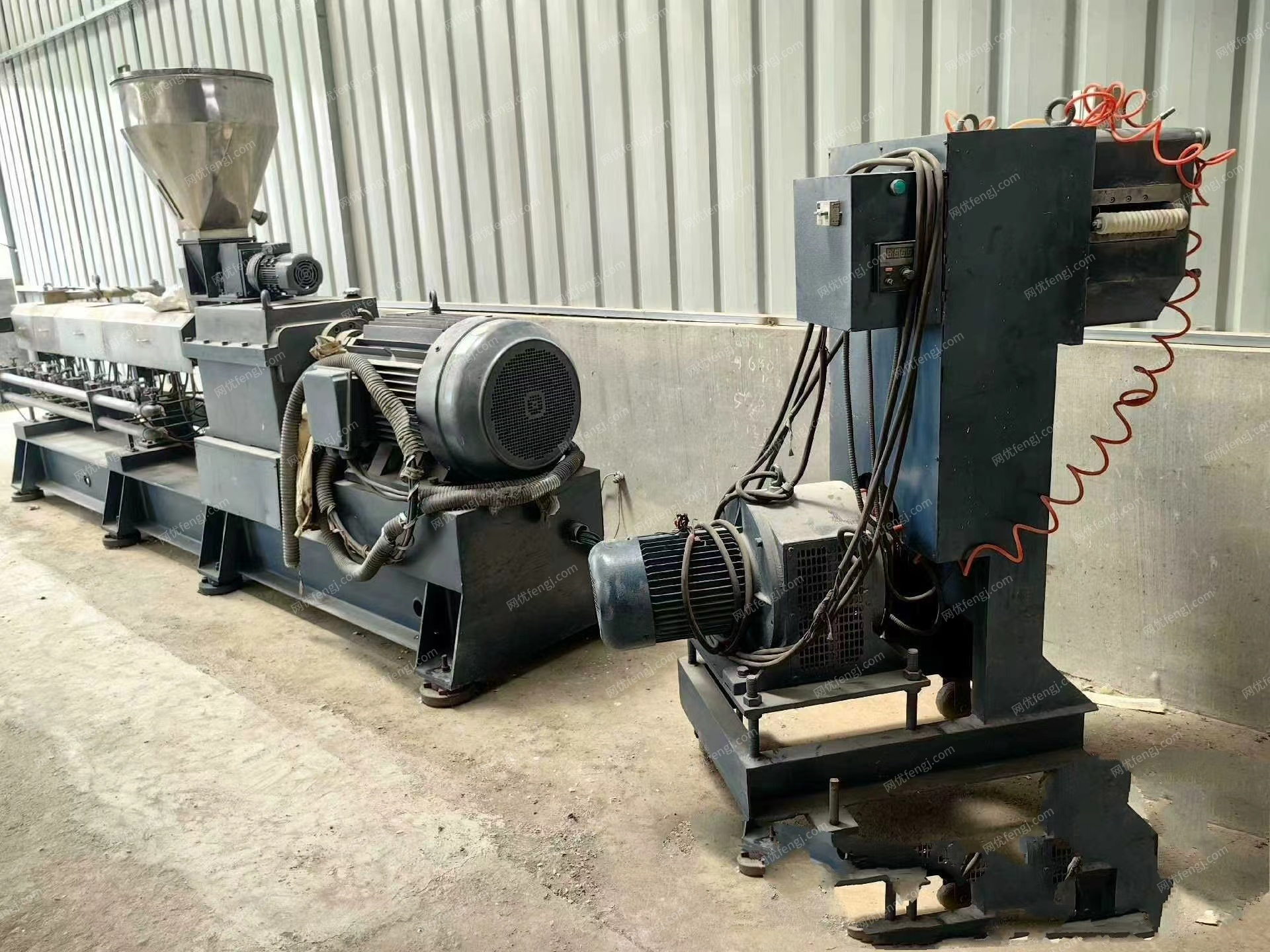 山东 青岛出售南京欣辉65双螺杆挤出造粒机,上料机,储料罐,切粒机,液压泵,油泵冷,却水箱,真空泵等整套设备