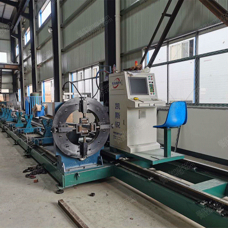 方管相贯线切割机 相贯线切割机 数控相贯线切割机数控相贯线切割机支持异型管数控切割分为编程和控制软件,利用编程软件完成异型管复杂曲线切割编程,并不占用机床时间,大幅提高机床的使用效率并且便于管理。由于KASRY系统软件本身具有切割三维空间任意复杂曲线的功能,并可直接读取编程软件提供的机床代码,并由此来控制机床各轴的运动。因此,重要的是看编程软件如何完成异型管复杂曲线的编程。KASRY系统软件可以兼容AUTOCAD,TEKLA等软件。异型管编程抛弃了传统参数化编程(即只能编特定的相贯式样),采用三维节点展开结合AUTOCAD,TEKLA等三维设计软件完成编程工作。软件编程非常简单,只要利用已经做好的三维结构设计图,轻松点鼠标即可完成。相贯线切割机运行KASRY系统软件,打开三维节点展开模块;AutoCAD或TEKLA中打开建好的异型管三维结构设计模型。工具选项中"异型管切割"轮廓按钮, 自动可生成切割代码, 打开生成的切割代码, 软件自动识别出错的代码并跳过。方管相贯线切割机工具选项中“反向计算”轮廓按钮,可以在客户未知管件长度的情况下根据工程图纸自动计算出工程所需原材料,方便客户定长进料。