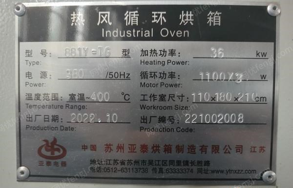 苏州亚泰烘箱,参数铭牌上面有,