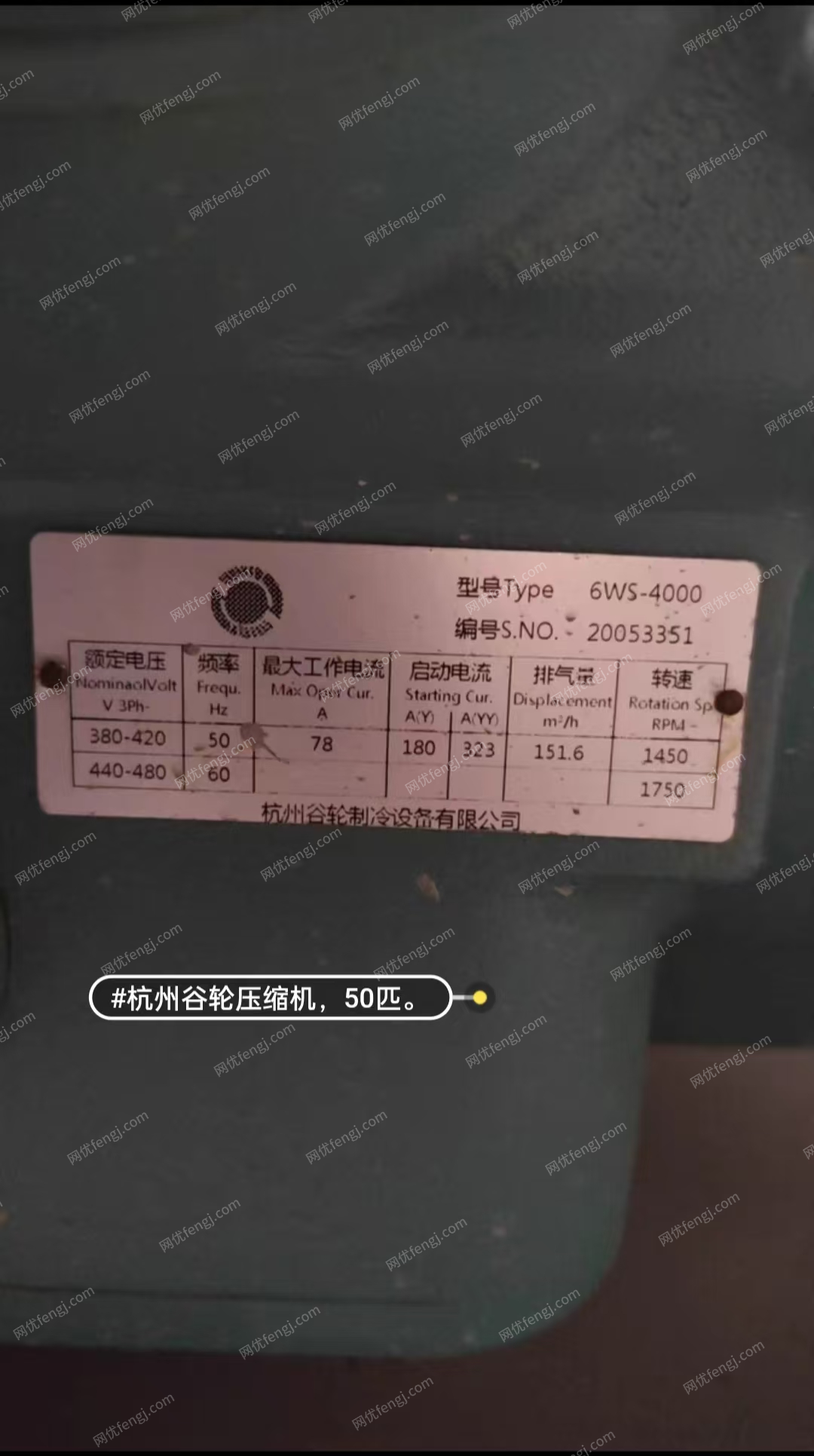 出售比泽尔型水冷机组,50匹